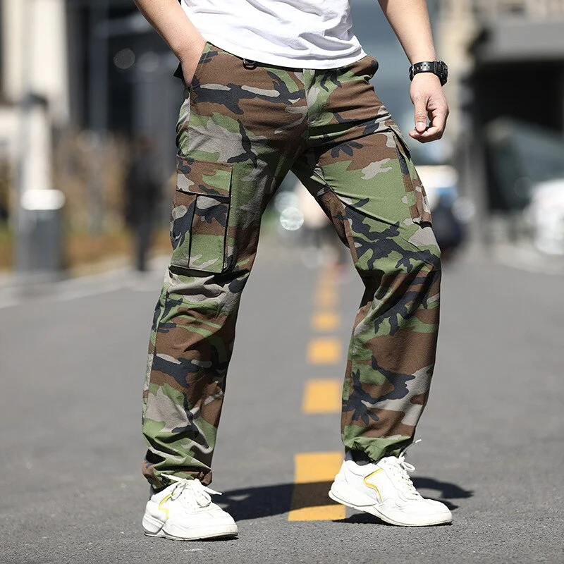 • Camouflage Summer Tactical Cargo Pants Military Wide Leg Work Clothing Casual Streetwear Quick Dry Outdoor Combat Trousers
