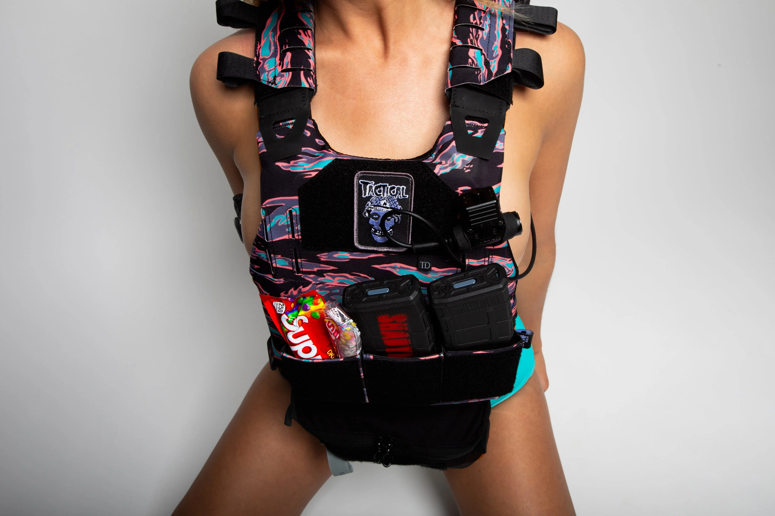 The front has a large 3 x 5 inch loop area for patch identifiers. Ithas integrated nylon vertical strips to accommodate QASM buckles (not included) to add achest rig / placard if needed. Also included is a triple magazine shingle for .223/5.56magazines. Cummerbund has 4 integrated pouches (per side) for magazines, IFAK orcomms. Interior is lined with breathable spacer mesh for comfort. The back of the carrierhas a 2x10 inch loop are for patch identifiers.