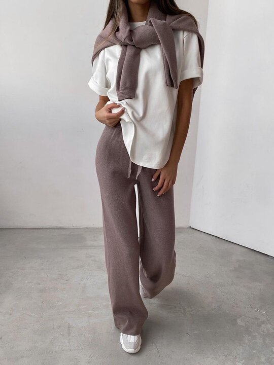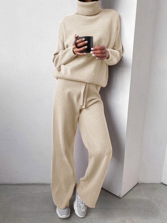 Product: Casual High Neck Long-sleeved Sweater Trousers Women's SuitGender: WomenType: SuitDecoration: Pure ColorMaterial: PolyesterStyle: Casual/ FashionTheme: Fall, WinterColor: Coffee, BlackSize: S, M, L, XL, 2XLPlease Note: All Dimensions Are Measured Manually With A Deviation Of 1 To 3cm.