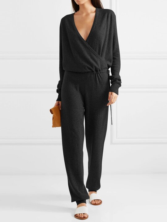Casual Long-Sleeved V-Neck Loose Casual Jumpsuit