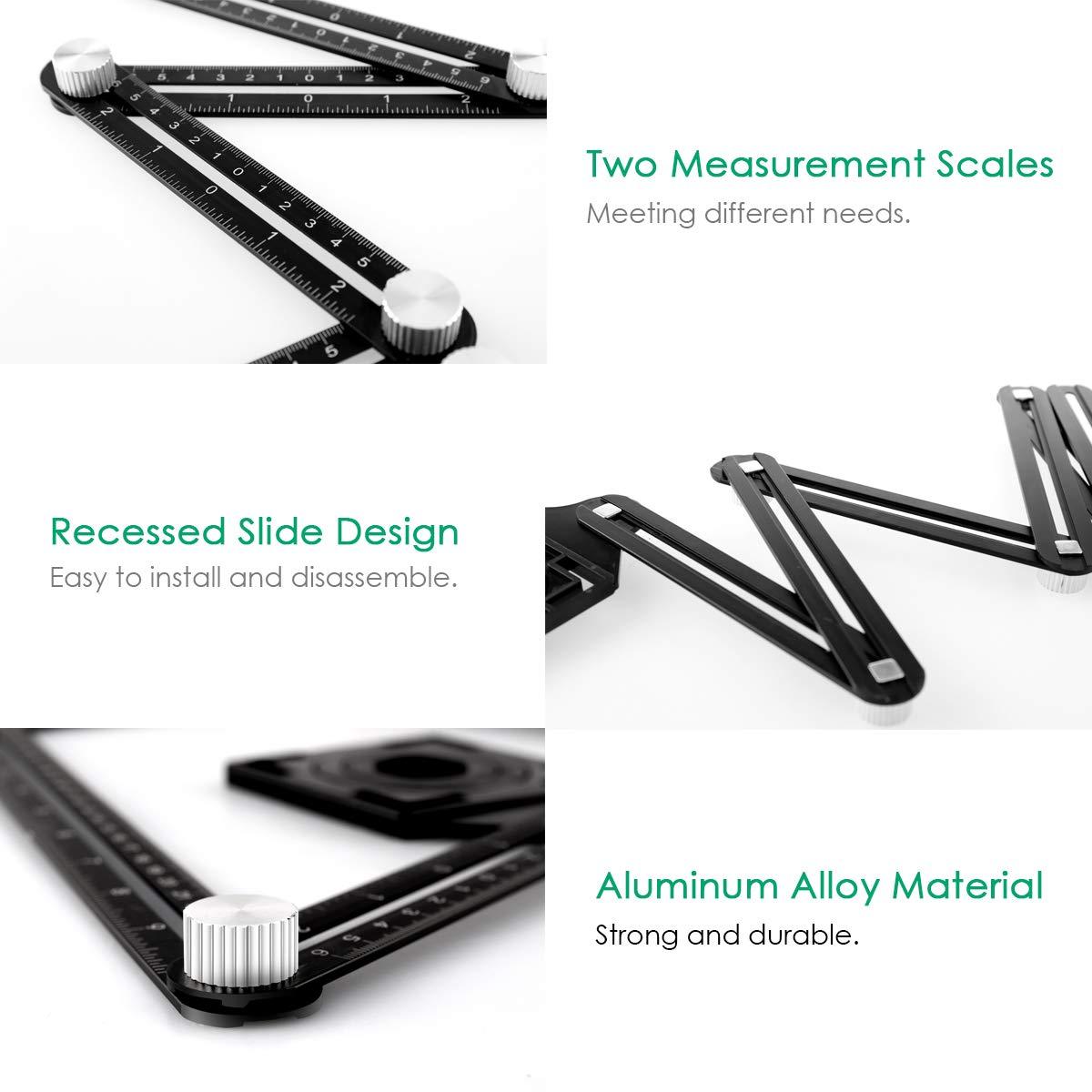This Multi-function Angle Ruler is an upgraded version with more features. It is a measuring tool and tile positioning hole opener. Our newly upgraded universal angle ruler has a six-piece ruler and six metal knobs that fold freely. Simply adjust the six metal knobs to precisely create the shape you want. Measuring objects of different shapes is quick and easy.
